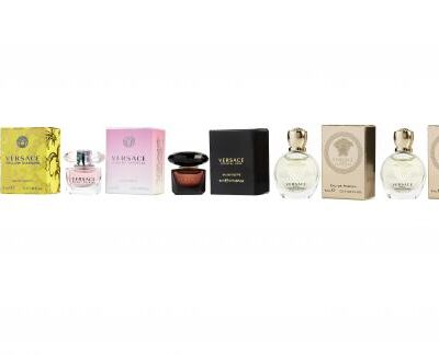 Versace 5 Pcs Mini Set For Women: Bright Crystal 0.17 Eau De Toilette + Bright Crystal Absolu 0.17 Eau De Toilette + Yellow Diamond Intense 0.17 Eau De Parfum + Yellow Diamond 0.17 Eau De Toilette + Crystal Noir 0.17 Eau De Toilette