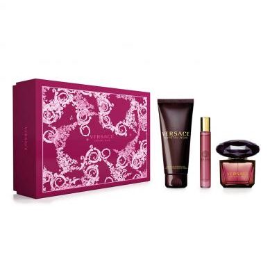 Versace Crystal Noir 3 Pcs Set: 3 Oz Eau De Parfum Spray + 0.3 Oz Eau De Parfum Spray + 5 Oz Body Lotion