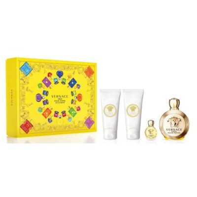 Versace Eros 4 Pcs Set For Women: 3.4 Eau De Parfum Spray + 0.16 Eau De Parfum + 3.4 Body Lotion + 3.4 Shower Gel (Hard Box)