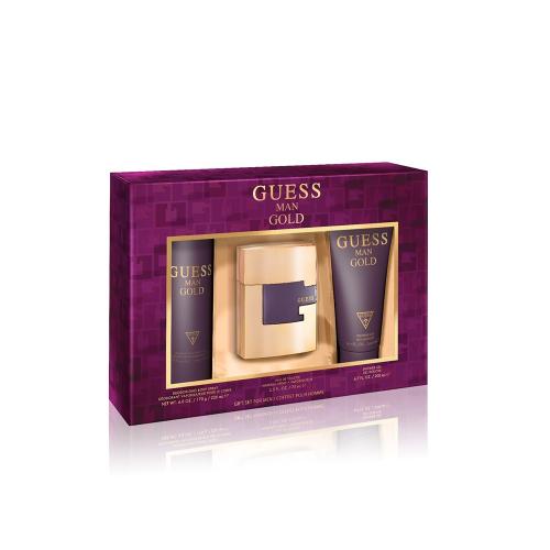 Guess Gold 3 Pcs Set For Men: 2.5 Eau De Toilette Spray + 6.7 Shower Gel + 6 Oz Deodorizing Body Spray (Window Box)