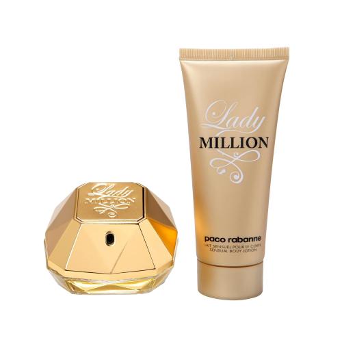 Paco Lady Million 2 Pcs Set: 2.7 Eau De Parfum Sprar + 3.4 Body Lotion (Metal Box)