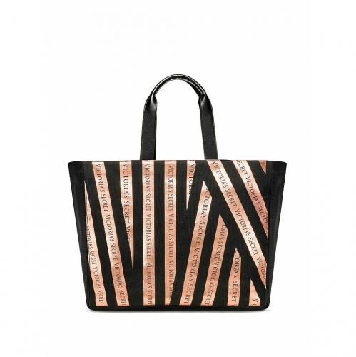 Victoria’S Secret Large Black Gold Metallic Striped Bombshell Tote Bag